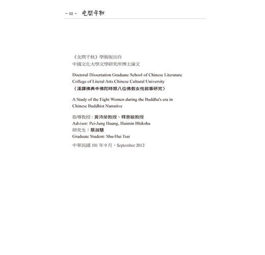 2013 博論:〈漢譯佛典中佛陀時期八位佛教女性敘事研究〉