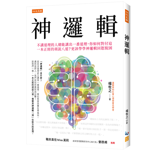 《神邏輯》這本書,能幫助我們在習以為常的謬誤中,以幽默的方式跳脫邏輯的框架重新看待這個世界,同時還能在閱讀的過程中訓練自己獨立思考的能力,這與我提倡的創新思維不謀而合。我在企業教授創新課程時,常告訴同學:「創新思維是一種需要跳脫邏輯的框架,且需要解決沒有標準答案難題的獨立思考能力。」