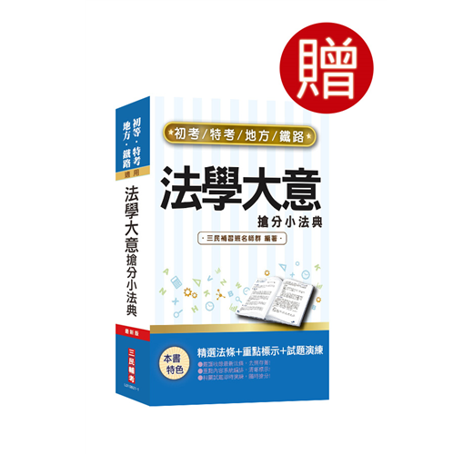 ★套書附贈《法學大意搶分小法典》,幫助考生輕鬆應考,俐落地將考場的零碎時間化為涓涓入袋的分數!