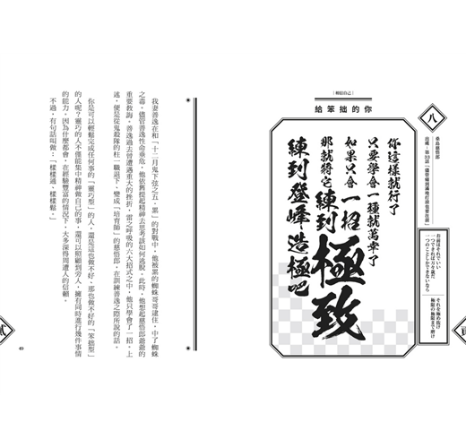 精選「鬼滅之刃」名人語錄,並以金色貼紙加強金句的力量。