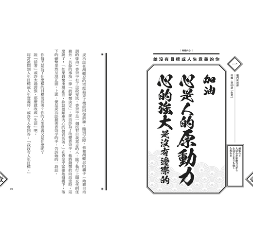 一句話,《鬼滅之刃》的粉絲必買!不僅文字充滿正能量,居然連漫畫單行本沒收錄的句子也網羅其中,根本就是人生金句完全版。我覺得這是一本年輕世代版的心靈雞湯。