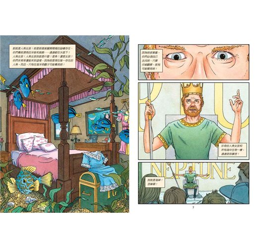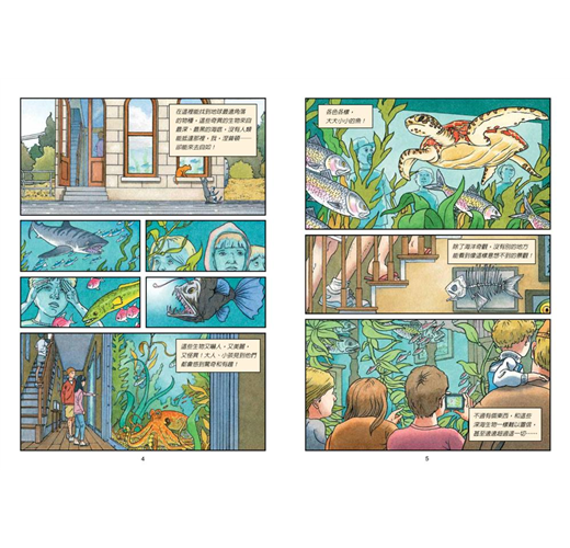 而造就書中美麗海洋的畫家,是三度榮獲美國插畫大獎──凱迪克金牌獎的大衛威斯納,最為著名的就是他的無字繪本《瘋狂星期二》、《7號夢工廠》、《海底來的秘密》、《鬆餅先生!》都是文字非常少,幾乎沒有,但在畫面中透漏豐富的訊息,直接用視覺引導讀者讀故事。這回他跨領域挑戰圖像小說,篇幅是一般繪本的六倍!大衛威斯納靈活的運用大小不一的畫格,呈現出廣闊的海洋、被囚禁的海洋生物、人魚女孩的冒險、及自由的外在世界,更使用多變的視角,描繪故事中人物的互動與內心掙扎,相當精采而深刻。