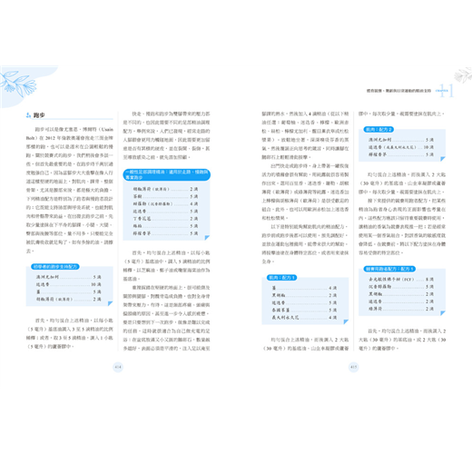4.書中有各種年齡層的配方,如:從嬰兒、孩童與青少年,到成人、老年人、孕婦。也貼心解說了女性和男性的保健配方。
