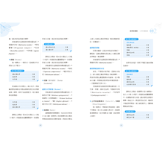 3.有芳香療法配方辭海之美譽:包含免疫、情緒、職場、運動、皮膚美容、居家SPA、居家環境、寵物護理等,主題包山包海。