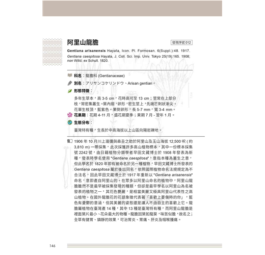 本書以阿里山地區植物的發現歷程做一系統性整理,共整理出62科120種以阿里為名之植物,是臺灣所有以地名命名的植物中,除了以「臺灣」命名之植物外,次高之地名;其中55種屬於臺灣特有種,是極具代表性之原生植物,又有17種被臺灣維管束植物紅皮書列為稀有保育等級,包含瀕危(EN)3種、易危(VN)5種、接近威脅(NT)6種及資料缺乏(DD)3種。撰寫計畫及間為了蒐集資料,也進行了實地的採集調查,過程中重新發現確認了阿里山松的存在,是此計畫意外的收穫,讓人為之雀躍。感謝協助本書審定的委員給予寶貴的意見及修訂建議,以及許多提...