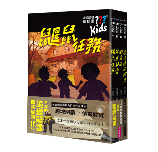 【三個問號偵探團】是一套中長篇偵探故事,一本書一個案件,以完整的敘事結構,培養小讀者理解、整合、歸納的能力;讀完一個故事,就完成了一次邏輯推理訓練。