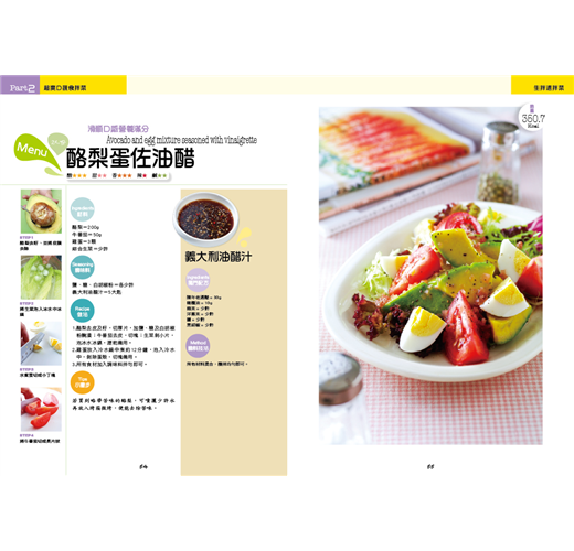 書中美食從經典到創新,由菜色到醬料,都能讓你嚐到五星級的美味。尤其是配菜、盤飾,3位老師及攝影師卯足全力,讓平民蔬食變成米其林高檔美食,色香味俱全,生活品味盡顯無遺!