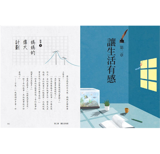 這本書即是我與她合作,她以故事串起作文心法,具有可讀性與工具性,盼望對教師、學生、父母,或者有心寫作者幫助。