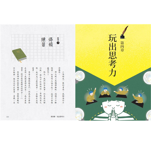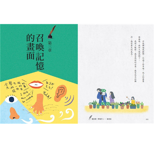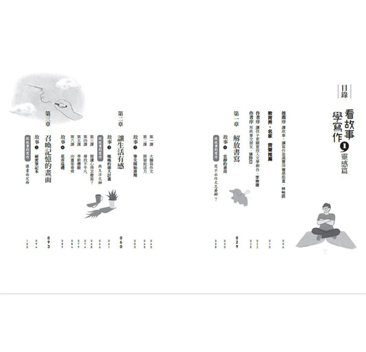 整本「靈感篇」一共有二十三節課,還有畫面感、思考力、字句詞彙的文字力量等,跟著故事主角一次次的體驗、學習、探索,彷彿也跟著突破、思考、前進、安心。