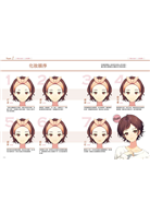 從最基本臉部構造、化妝順序開始,依序介紹眉彩、眼線、眼影、睫毛膏、腮紅、口紅,每部位各6種不同妝容。接著介紹7種臉部類型,以及各種臉型適合的妝容。