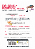 為什麼apple, art, again中的a發音都不一樣呢?full(充滿的)要怎麼念才不會像fool(傻瓜)?你要的答案,這一篇都有!除了按部就班跟著豐富單字、例句練習音標讀音,記憶字母組合常見的發音等。還可以深入探究本篇收錄的有聲子音、無聲子音易混淆字比較,以及台灣人常犯的發音錯誤,矯正自己容易讓人產生誤會的字詞發音。