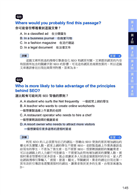 本書每一題都有詳盡的「解析」,讓考生能夠知道這些題目需要注意的考試重點,例如:聽力測驗的「看圖辨義」可以從圖片先判斷這個圖片的人物在做什麼、他的背景是在什麼地點等等,再從播放的選項中找到最符合的答案。同時,題目中的單字及片語也會在「單字片語」中補充,讓考生掌握考試中會出現的詞彙、片語。而本書也會在「補充說明」中補充必考的文法,讓考生的文法架構更清晰。
