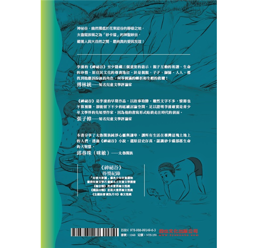 名人推薦:本書分享了太魯閣族純淨心靈與謙卑,讓所有生活在台灣這塊土地上的人們,透過《神祕谷》小說,還原信史存真,認識砂卡礑部落生命的大智慧。——邱春珠(咪敏) 太魯閣族