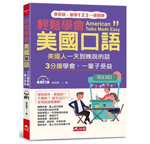 為了幫助大家學好英語,美國AA Bridger公司組了一群美國人,天天集思廣益的在模擬美國的生活,美國人每天說的話,製作成一套套的英語學習書,我們分成各類來教,有的是以基礎句型來作為學習的藍本,有的模擬日常生活,本書則是以教美國口語為主,這些話,都是美國人一天到晚說的英語。