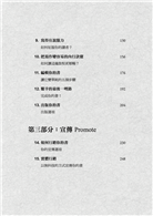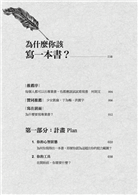 這本書分成三個部分,第一個部分教我們如何「計畫」,接著就是開始「寫作」,最後就是「宣傳」。幾乎把每個出版寫作的細節都涵蓋到,看完這本書,讓你就離出書不遠了。書名要怎麼訂?怎樣定位市場?找到屬於你的客群,為誰寫、為何寫,如何寫,這本獨一無二的書都完整的告訴你。——何則文