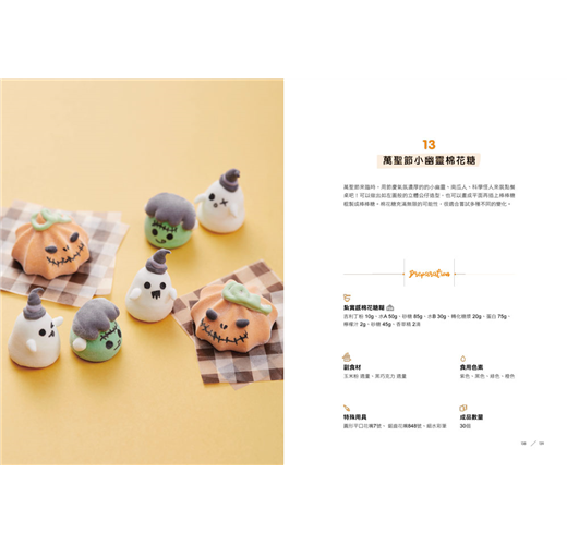 這次在著手寫《我的第一本手作造型棉花糖【全圖解】》之前,原本預設會比《令人著迷的夢幻馬林糖》的內容更精簡一點,不過一邊想著這裡可以補充製作重點、那裡要提醒可能的失敗,寫著寫著,不知不覺間就完成了超出預期的充實內容。除了棉花糖的基礎知識和製作方式,我還提供了獨家私藏的創意,絞盡腦汁讓這本書的豐富度與實用度更臻完美。