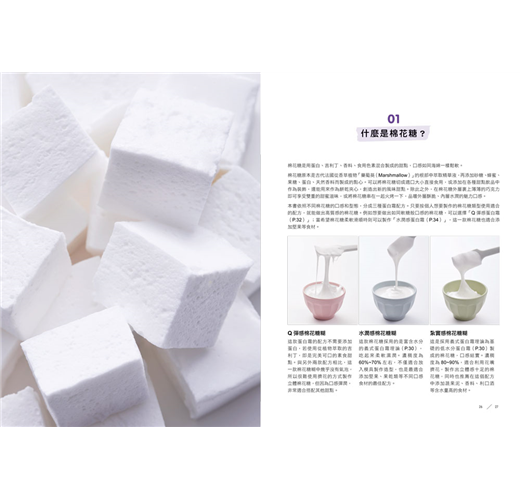 其實,從口感就可以很不一樣,本書提供三種不同口感的基礎棉花糖糊,