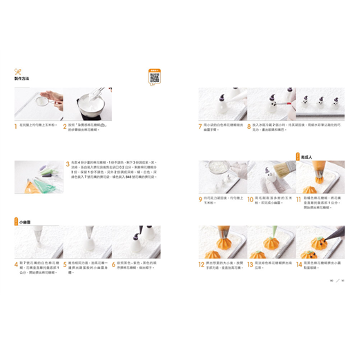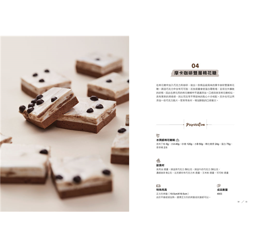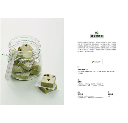 就算是第一次做棉花糖也能輕鬆上手!每個基礎步驟皆有實境示意圖,包含製作棉花糖糊、調味、入模、裝飾到描繪表情,過程較為複雜的作品,更是附上製作影片,一本全面又完整,讓你不得不成功的棉花糖指南。