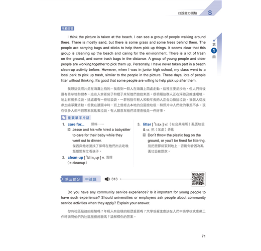 為因應此次改版,本公司亦在第一時間掌握由財團法人語言訓練測驗中心(LTTC)頒布的最新考題,經中外編輯多次研擬、網羅各種新鮮題材,最終完成這本完全仿真的《一本搞定 高分過關!GEPT 新制全民英檢中高級 5 回必勝模擬試題 + 詳解》,並為各試題做詳盡的解析。為讓讀者能快速熟悉新制全民英檢考試方向、增進應考實力,我們亦在試題本內提供「應試攻略」,為讀者深度剖析新制題型的出題脈絡並分享解題技巧,且此套書的難易度故意設定為比實際考試再難一點。同時,為了那些不方便使用光碟播放器的讀者,我們貼心地將音檔上傳雲端,只需掃描 QR Code 便能進行測驗。各位讀者若能善用此套書,相信必能全面「贏」戰新制考題,更能在中高級測驗裡