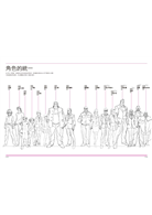 當角色形象確立後,會接著繪製「角色設定表」、「角色姿勢集」及「角色表情集」,