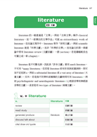 本書羅列近百個學術字彙,這些字表面上看似簡單易懂,但以每個單字為核心可引申出眾多相關詞性和字詞的搭配。希望讀者在使用本書之後能增加英文用字的多樣性,豐富表達形式,同時理解同一個字彙在一般領域和學術領域會有不同的語義和用法,不宜混為一談。例如literature一般是指「文學」,但在論文寫作則常是指「文獻」。而要在論文不同章節中表達「眾多文獻」時,我們除了用much literature 之外,還可以交替使用「considerable/ enormous/ extensive/ immense/ substantial/ vast/ voluminous + literature」或是「abundance/ considerable amount/ good deal/ rich body/ vast array/ vast collection/ wealth/ wide range + of literature」等搭配形式傳達相同的意義,呈現我們用字遣詞的多樣與豐富。而書中除了詳列英文學術詞彙的搭配之外,更提供大量的例句和句型練習,讓讀者深入了解搭配詞語在英文學術寫作中的實際用法,並可進一步利用這些句型自行練習寫作。