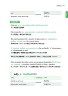 例如:approach作為動詞,在一般英文中常表「接近」,但在學術英文中,卻比較常當作「處理」,如approach the problem(處理此問題);又如argue,一般常作「爭論」,在學術英文中,argue則解釋為「主張」,如the research argued...(此研究主張…)。