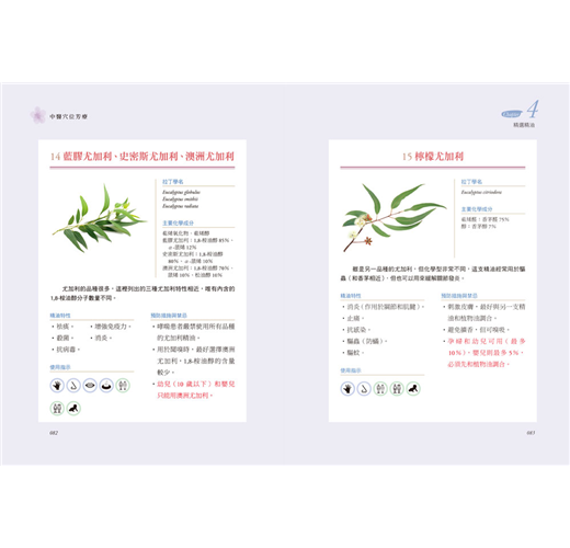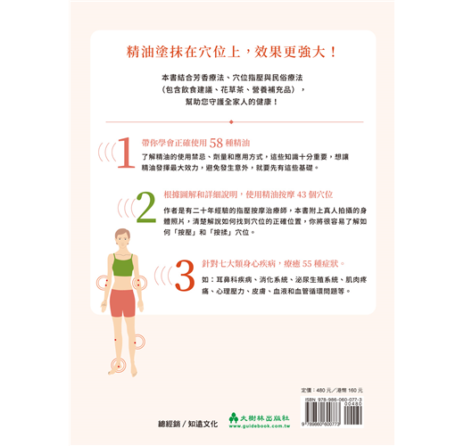 本書特色1.精油塗抹在穴位上能夠產生協同作用,使得精油的吸收和作用更強大。