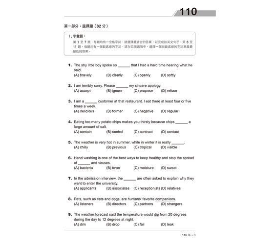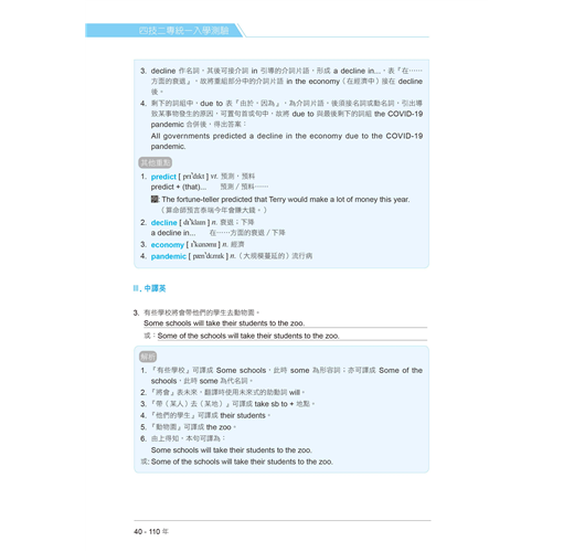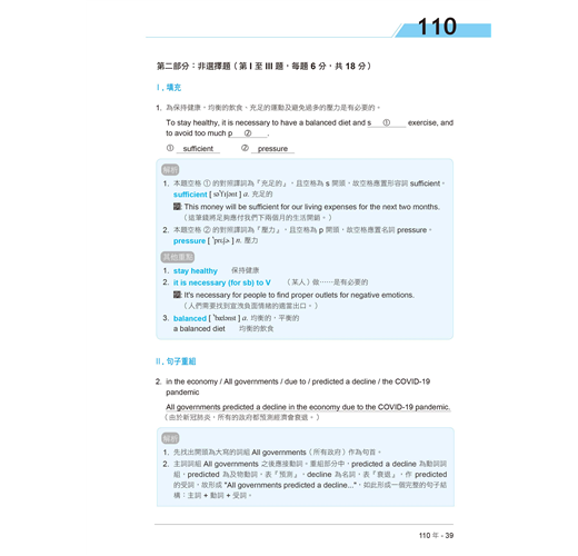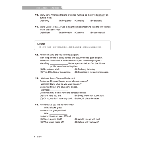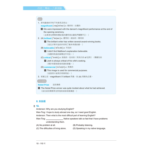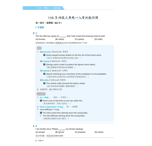 有感於坊間專為高職生出版的升學用書,多為簡答且解析又不夠完整的參考書,因此我們出版本書的目的,就是要從根本出發,協助所有高職同學培養對英文的熱愛及答題的技巧,使他們對未來的四技二專入學測驗不再畏懼,甚至以超高分通過這個令許多高職學生頭痛的英文科測驗。