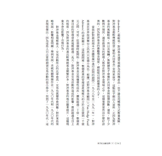 雖然對沖基金一般被視為高投機產品,但由於其優異的風險績效比,近二十年來越來越受投資人的青睞,總資產也從過去的五百萬美元,增加到現在超過兩億美元的龐大規模。對沖基金的崛起,也真正改變了整個投資圈的生態及市場行為。因此,透過這本訪談精華,讀者可以掌握對沖基金經理人的思維脈絡,學習他們在瞬息萬變的市場當中,如何制定出最佳的投資策略。