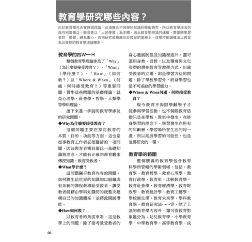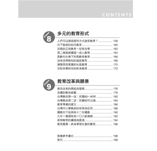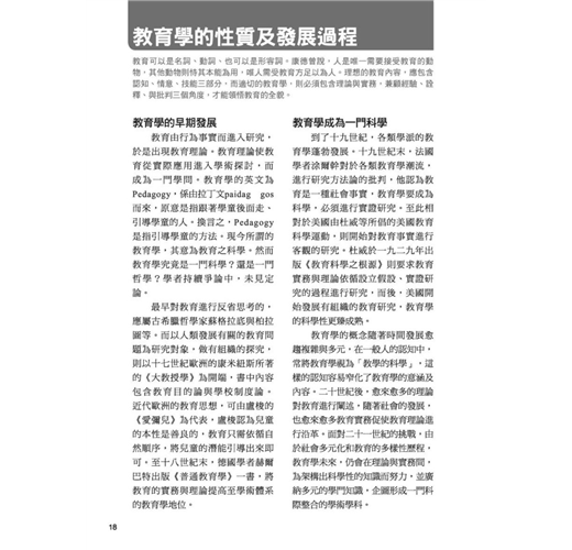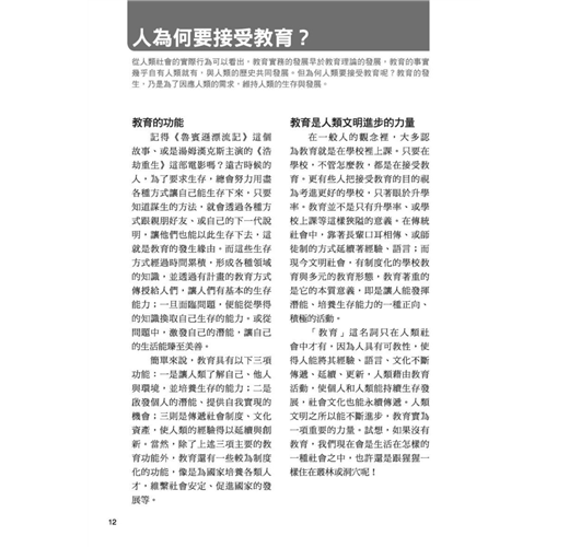 都能透過教育學掌握教育的內涵,並實踐在教學活動中。面對高度競爭的全球化時代,知識學習早已不限於學校的體制內。傳統教育如何因應,才能培養具備終身學習能力的世界公民?各國的教育制度與改革經驗能給我們什麼啟發?新課綱與十二年國民教育的理念和目標是什麼?台灣的高等教育遭遇什麼困境?想要深度了解這些關係著個人及社會未來發展的重要議題,必須先認識教育的本質、發展與改革的歷史。