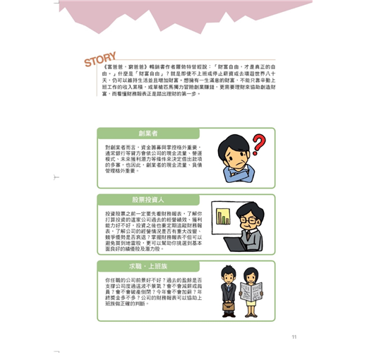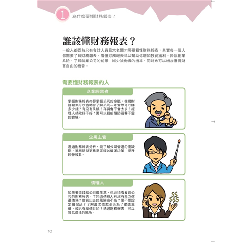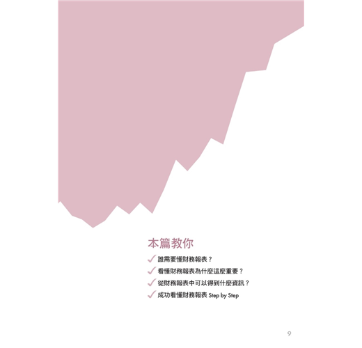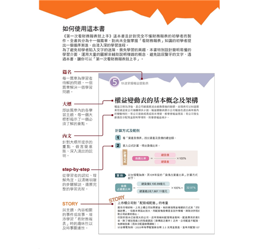 專為入門者設計,不需要任何財務背景,從基本財務名詞認識起,到取得財務比率做做為科學工具,練就自己就能檢驗企業體質的扎實功夫。