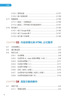 坊間有關HTML+CSS的書籍,多不計數,但通常都是片段式的講解CSS語法,或者如同指令查詢手冊般,而少有涉及網頁版型編排部份,或雖有提及,但總是蜻蜓點水般帶過,鮮少有一本完整的範例製作過程及解析;從網頁的版型規劃與編排、圖片的種類、字型的應用、動畫的設定、影音的嵌入、最後到整個網站的建置與超連結設定,讓您同時學到HTML語法、CSS語法、版面編排觀念以及網路資源的應用。