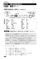 每週第1到第6天,每日兩頁的學習主題有三步驟。首先,學習該單元的課前重點,如書信裡的敬語、閱讀報紙極短標題等。其次,透過第二步驟的會話引導,增加對第三步驟文章的理解能力。循序漸進,由易而難的引導設計,讓中級學習者不再害怕文章閱讀。第7天「實戰問題」,則是針對該週學習內容的總測驗。