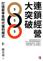 大力推薦這本連鎖加盟的「孫子兵法」!要創造一個永續發展的連鎖加盟品牌,絕不是一蹴可幾。拜讀陳其華顧問出版《連鎖經營大突破》一書,實感敬佩,本書不僅結合經營理論與市場現況,更以深入淺出的引導方式,栩栩如生的鮮明故事引人入勝,在此誠摯推薦給連鎖品牌開發的市場新秀、經營連鎖品牌的老將,必能出奇制勝,克服盲點,稱霸市場。 —吳永強|社團法人台灣連鎖加盟促進協會理事長