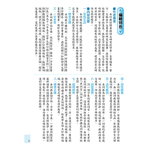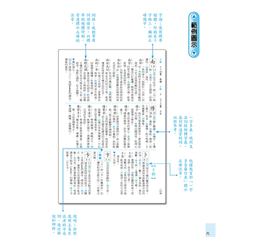 4.字義解釋均有例詞,每一例詞均附造句範例,幫助學生正確活用該字詞。