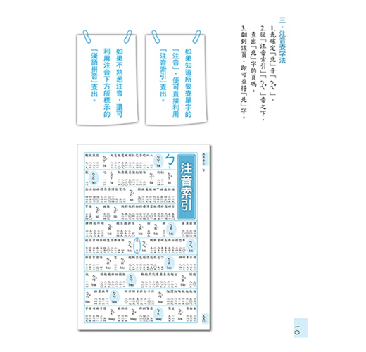 3.讀音依照最新頒布的「國語一字多音審訂表」,並將所屬音讀分類,方便查閱。