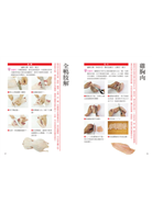 包含切絲、切丁、滾刀塊,片魚、片肉、去皮、除魚鱗、拔魚刺、蝦去沙腸等,各種料理前的加工步驟,透過圖文對照方式,讓學習更直觀,在廚房可以很優雅地完成多道佳餚。