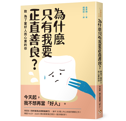 VIDEO 今天起,我不想再當「好人」。 韓國版《你的善良必須有點鋒芒》,撫平30萬人內心糾結的療癒之作! 韓國Yes24、aladin書店讀者幾近滿分一致共鳴好評! 為什麼每次都只有我要體諒? 為什麼說出「好累」那麼難? 真正的我究竟是怎麼樣的人? 我的想法和心情又有誰會懂? 被問到「想吃什麼」時,總是回答「都可以」? 無法拒絕別人,經常被推銷買了沒有用的東西? 明明不覺得好笑,只因為旁邊的人笑了就跟著笑? 借錢給朋友,怕破壞關係所以不敢要求對方還錢? 討厭爭吵,即使受委屈也寧願忍氣吞聲? 你也是這樣的「好人」嗎?比起自己,總是先考慮別人。想要被認可,於是選擇戴上「好人」的面具,假裝開朗、沒事的樣子。但這樣的「假裝」並不是我們真實的樣貌,久而久之,便會讓我們感到心累、孤單,壓抑的自我宛如未爆彈,最終將我們炸得遍體鱗傷。 或許你沒辦法馬上脫下面具,但你可以學著正視情緒,擁抱真實的自己。或許表達內心的情感讓你覺得尷尬,但你可以用同理心打開心門,構築良性溝通的橋樑。而無論任何時候,都請不要忘記,你是值得充分被愛的人。