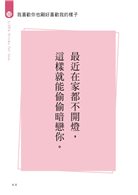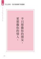 每篇內容均以金句開場,帶點趣味和幽默感的,先溫暖療癒你的心,再更進一步分享關於愛情這門課的苦與樂。