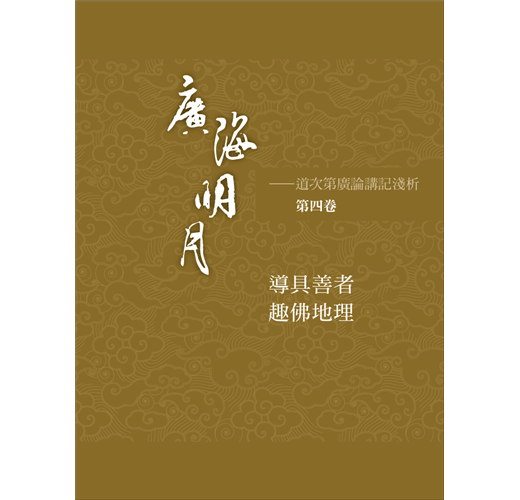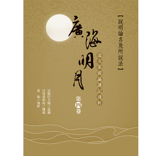 《廣海明月》第四卷,收錄第183至226講,共44講真如老師的開示。老師依照傳承師長的解說,結合廣泛的教理,並且增添動人的譬喻,深入淺出地闡釋上述《廣論》中的內涵。