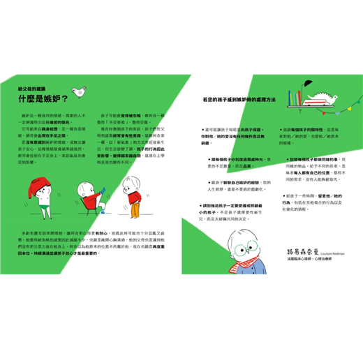 ★本系列作者科奇卡(Kochka)為法國的童書作家,將孩子們日常生活的情境與不同的情緒反應做結合。每本書末皆附上一篇心理師對於該情緒的說明,以及兒童在什麼情況下容易產生此種情緒,提供家長參考,讓爸爸媽媽更了解小小孩的情感反應與表達能力。同時,針對當孩子們在害怕、難過、生氣、嫉妒或缺乏自信時,父母該如何陪伴、引導孩子們度過,或是讓孩子們將情緒穩定下來的方法,作者也提出了簡單而實用的建議說明,適合家長與孩子一起共讀、討論。