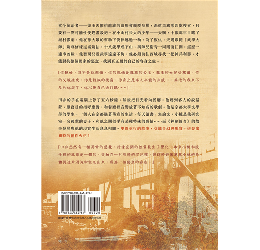 田非的手在電腦上停了五六秒鐘,然後把目光看向餐廳。他聽到客人的說話聲,服務員的招呼應對,和餐廳裡音響放著不知名的歌劇。他是京都大學文學部的學生,一個人在京都過著落寞的生活,每天讀書、寫論文。小桃是他研究室一名後輩的妻子,和他之間似乎有某種特殊的感情……而《神劍傳奇》的故事發展與他的現實生活息息相關。雙線並行的故事,交織奇幻與現實,迸發出嶄新的創作火花!