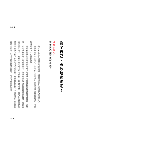 如果你在某個地方,不管在學校、公司,遭遇到這些惡劣的攻擊,覺得辛苦到不行、壓力大大無法負荷、痛苦到不知道怎麼呼吸的時候,請你趕快逃走!禮貌?責任?管他的,趕快給我逃走!