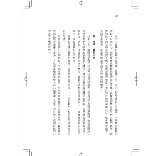 成熟的標誌就是尊重不同的文化、不同的價值觀,放下那些個人化的標準,平和地看這個世界的多樣性、看一個人的複雜性。同時,不會因為看到一些負面的事情而驚慌失措,甚至大失所望,或者憤憤不平、心灰意冷,覺得世界辜負了自己的美好期望,而是藉由這些線索看到自己的盲點,看到自己成長的方向。