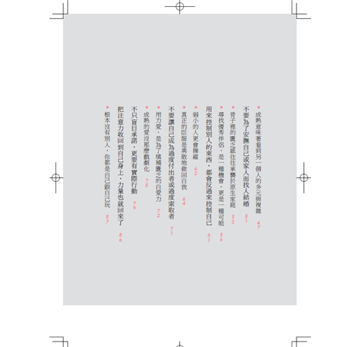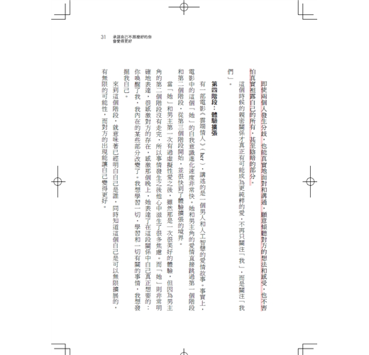 懊惱自己找錯人,抱怨,或明或暗地表達不滿,想透過分手躲開這一切……這些狀態我都體驗過。那種進退皆無門,被死死卡住的感覺,我知道是怎樣的。