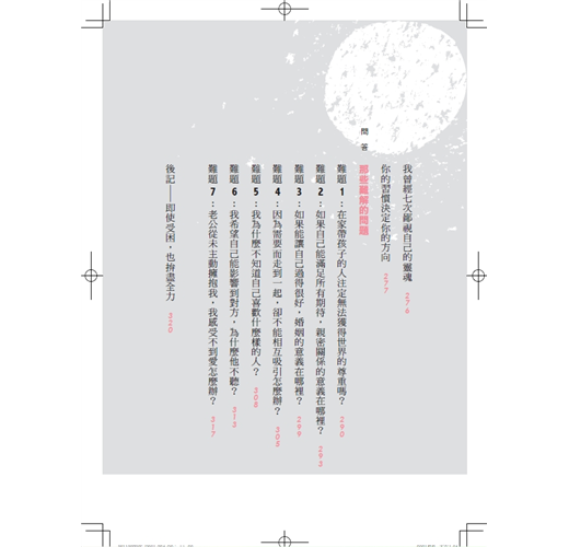 就像所有的表達都要承擔一種風險,就是自己的意圖會被曲解,但我還是要表達。我相信一個靈魂在某個時刻會因為這本書中的某段文字而得到撫慰或希望。你經歷的越多、體悟的越多,在這本書裡就會看到更多不同的東西。