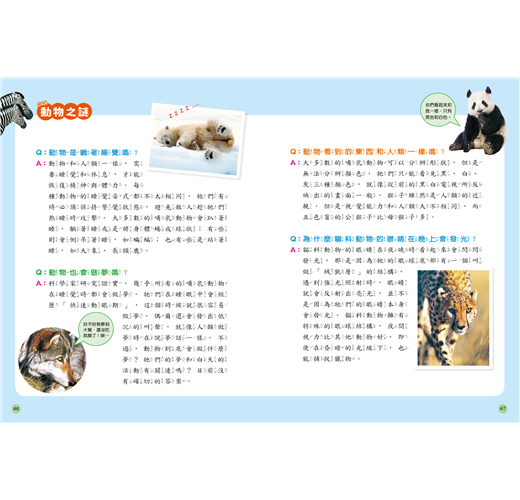 5.有趣的「動物之謎Q&A」,以問答方式,帶領孩子探索更多關於動物的特殊行為。