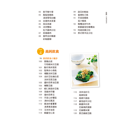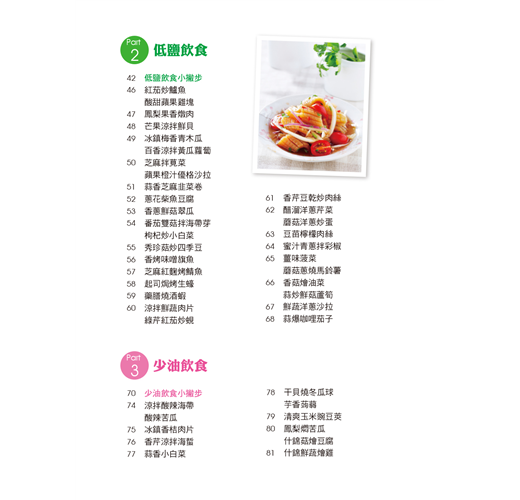 精選食材,設計180道低卡、低鹽、少油、高鈣、高纖料理。只要掌握訣竅、善用調味,就能巧妙變化三餐,吃得安心又健康。