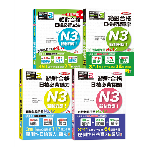 熟練「日檢N3熱銷套書」,「單字,文法,閱讀,聽力」一次就過關!