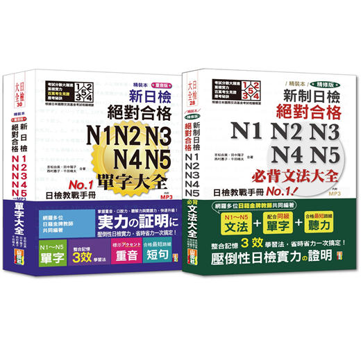 《精裝本 重音版 新日檢絕對合格N1,N2,N3,N4,N5單字大全》